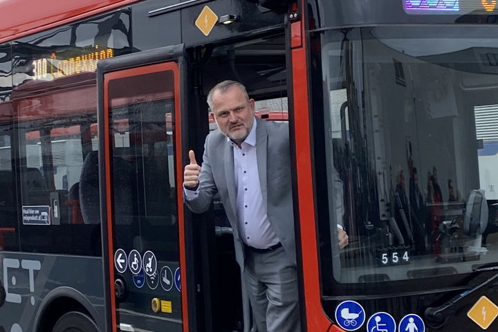 Gerard Slegers: ‘De concessie Zaanstreek-Waterland moest 100% uitstootvrij zijn. We wisten dat er daarvoor grond nodig was om bijvoorbeeld een laadstation te plaatsen. Een stuk grond vinden in deze tijd, met de woningnood, is ingewikkeld. En een aansluiting krijgen op het elektriciteitsnetwerk is net zo moeilijk. Dus hebben we als Vervoerregio onze aanvoerdersrol een verdieping gegeven. We zijn, nog voor we de concessie eisen bekend maakten, zelf in overleg gegaan met gemeenten in het concessiegebied en Liander. We hebben grond gepacht waar het laadstation op gebouwd wordt en we hebben aansluiting op het elektriciteitsnetwerk geregeld. Om de ambities van uitstootvrij en hernieuwbare energie ook daadwerkelijk te halen moesten we dus zelf nieuwe kennis en kunde opdoen. Dat hoort bij aanvoerder zijn in de mobiliteitsopgave zijn.’