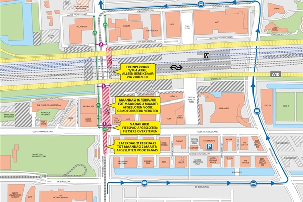 De werkzaamheden starten op maandag 16 februari en duren tot en met maandagochtend 2 maart. Ze vinden plaats op de Parnassusweg tussen de Gustav Mahlerlaan en de A10. De werkzaamheden hebben gevolgen voor zowel autoverkeer, tramverkeer als fietsers en voetgangers. Op hoofdlijnen zijn de gevolgen voor het verkeer als volgt: